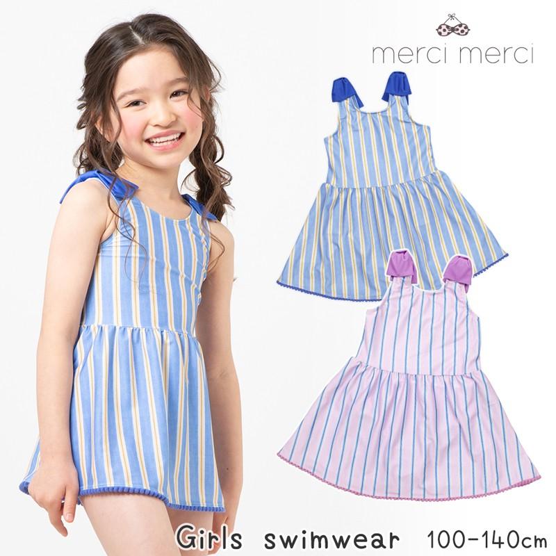 クラシックなストライプ キッズ 水着 女の子 ワンピース シンプル パステル リボン 子ども 水着 幼稚園 小学生 100 110 1 130 140 Merci Merci Alla Polacca 通販 Yahoo ショッピング